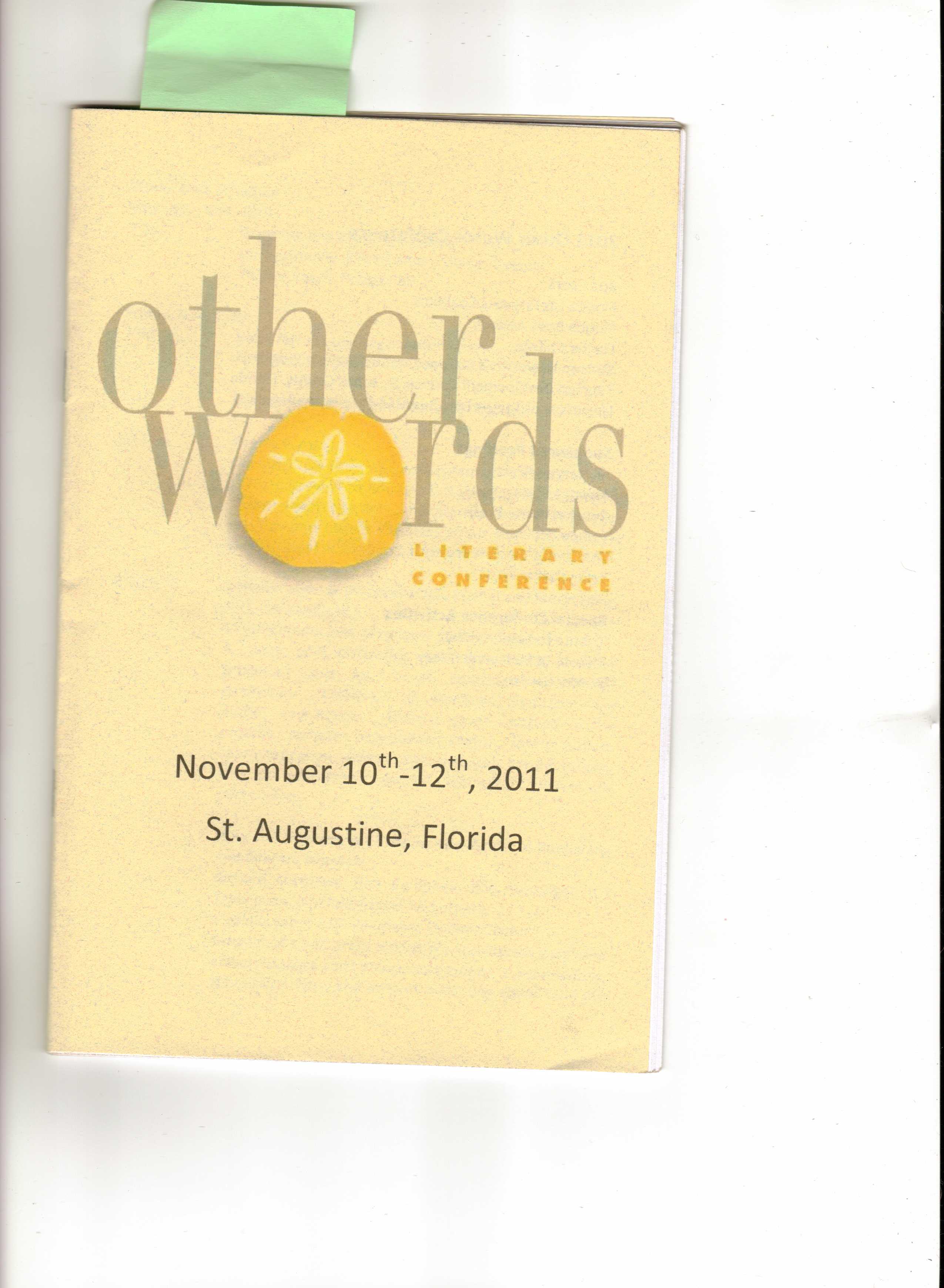 I started off with the “Other Words” Conference in St. Augustine, where I sat on a panel that paid tribute to the late great Jeanne Leiby.While my panel discussion centered upon Jeanne’s “courage and talent” mandate in her old fiction workshops, you can also check out the tribute I wrote over at the Burrow Press blog. If you’ve never met Jeanne, this should give you a good idea of her life as a writer, editor, teacher, and mentor…and if you did have the pleasure of meeting her, I invite you to leave comments on that blog posting.